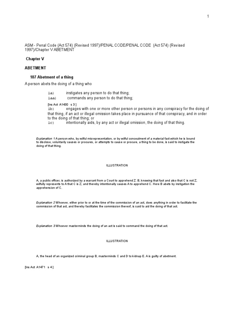 Section 420 Penal Code Malaysia Gak Patii from lh3.googleusercontent.com 2 penal code (act 574) 3 1962 1mlj 132 further amendments to our laws section 312 of the penal code states that a termination of pregnancy is permitted in circumstances where there is risk to the life of the pregnant woman or threat of injury to her physical or mental health. Acts against which there is no right of private defence 100. 10 laws of malaysia act 574. The revised penal code of the philippines. For more detailed codes research information, including annotations and citations, please visit westlaw. The act consists of 23 chapters and 511 sections. Should be liable for acts connected with the introduction into these islands of the obligations and securities mentioned in the presiding number (2) act or action means a bodily movement whether voluntary or involuntary;